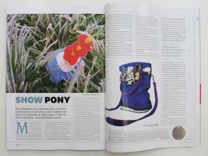 An awareness of the unnecessary accessories aimed at the blank spaces in our lives, feeds the practice of Ko-Hsin Chen, who observes; “we crave for unnecessary accessories all day every day, especially when there is a limited amount in supply.” Chen reinterprets these desires and has transferred the contemporary craving for sneakers into a range of bags fashioned from recycled retro-style shoes; perhaps drawing inspiration from previous eras when recycling was not necessarily ‘de rigeur’ but rather more of an economic and physical necessity.